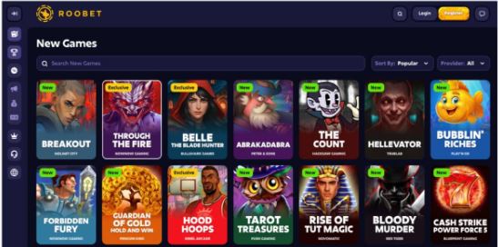 The Roobet Games section holds titles built by top developers in partnership with Roobet. They include popular titles like Crash, Keno, Mines, and Plinko. It also comes with their own version of roulette, a unique dice game, and slots with themes of the Roobet brand.